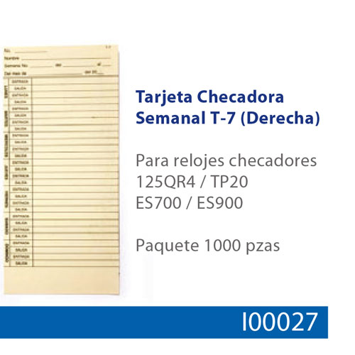 Tarjeta checadora quincenal T-10 con impresión a la derecha, para relojes checadores 125QR4, 150QR, ES700, ES900 y TP20. Paquete de 1000 tarjetas. Importadas de Estados Unidos. Tarjetas checadoras de la mejor calidad disponible en el mercado, cortadas e impresas con precisión para un registro claro y preciso de las checadas de los empleados.